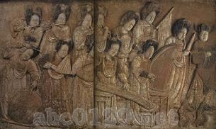 奉侍図浮彫は唐以来の宮廷墓の装飾を特徴づける音楽と奉侍という2つの基本的な要素を継承するものであるが、その浮彫としての大きさや芸術性豊かな表現の点で当時の墓室装飾には他に類例のない優れた質をもっている。 出所:「中国国宝展」