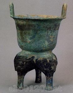 甑と鬲が合体して器をなしている。□縁には索状の耳があり、器腹には隔(竹+畀)〔スノコ〕がある。隔(竹+畀)と甑内壁は紐状の環で連接しており、(竹+畀)面には「十」の字形の透しがある。鬲部の体は分割し、足は高くなる。鬲部の外側の各面には牛首文が飾られ、頸頚部には獣面文が3列周っている。内外面にススの痕跡がある。出所:「中国の考古学展-北京大学サックラー考古芸術博物館所蔵」