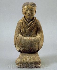 秦・漢・三国|陶磁器>灰陶加彩女子坐俑