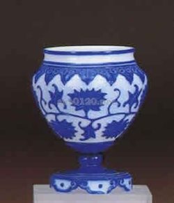 明・清|石器・ガラス|>白地藍被宝相華文脚付杯 |