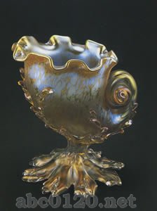 無色ガラス,斑文装飾,造形装飾.虹彩。出所:『ボヘミアのアールヌーヴォーグラス展』Bohemian Art Nouveau Glass