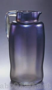 マリー・キルシュナーの注文により制作、無色のガラス.紫の濃淡,ッヤ消しの虹彩。出所:『ボヘミアのアールヌーヴォーグラス展』Bohemian Art Nouveau Glass