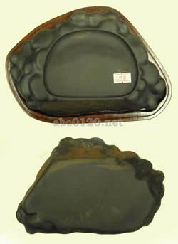 水中で小石塊で採掘されたもので、石の髄が水中で磨かれたものとして喜ばれ、小硯が主で優硯が多い。出所:『文房古玩事典』宇野雪村 関連用語: