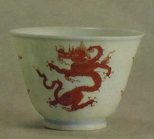 清時代 口径6.3cm 梅沢記念館 竜は赤い色で銘には「天明成化年製」とあるが、雍正時代の彷製である。出所:「清の官窯」 関連用語: