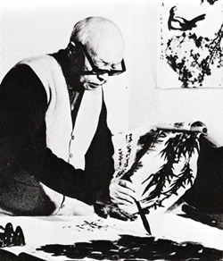 名を英、字を励公といい、優れた画風の花鳥画家であり、書道家でもある中央美術学院中国画教授などの職を歴任した、早くより白石翁を師と仰ぎ、その真髄を会得し、又、古きを遡り、徐渭、八大山人の真髄を探求した。又、自然を師とし、独自の画風を創り、勢いがよく、しかも和かな風格を作り出した。山東省済南市に李苦禅記念館がある。代表作品に『蘭竹』、『英視瞵瞵衛神州』、『双栖図』、『墨荷』、『紅梅怒放図』、『晴雪図』、『墨竹図』、『盛夏図』などがあり、画集『李苦禅画選』、『李苦禅画集』などが出版されている。狂草を善とし、その書は、力強くのびのびしている。彼は芸術教育家として、国内外にも遍く弟子を持っている。出所:「中国栄寶斎展覧」