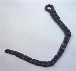Belt chain ポニェトヴィツェ第14墓,モラヴィア,チェコ 鉄,長さ5.35cm,重さ4259 紀元前2世紀 ブルノ,モラヴィア博物館 鎖の一端には留めるための鉤を、他の端には皮紐を通すための輪を付けている。出所:「古代ヨーロッパの至宝--ゲルト美術展1998」 関連用語: